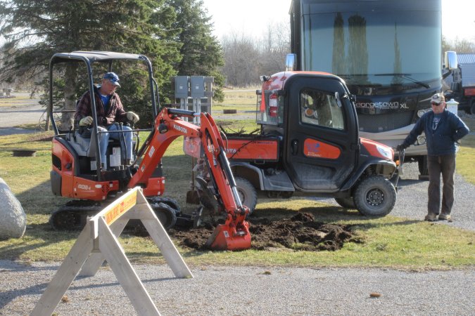 In the afternoon, we cleaned up some of the holes left behind from the old hydro poles.