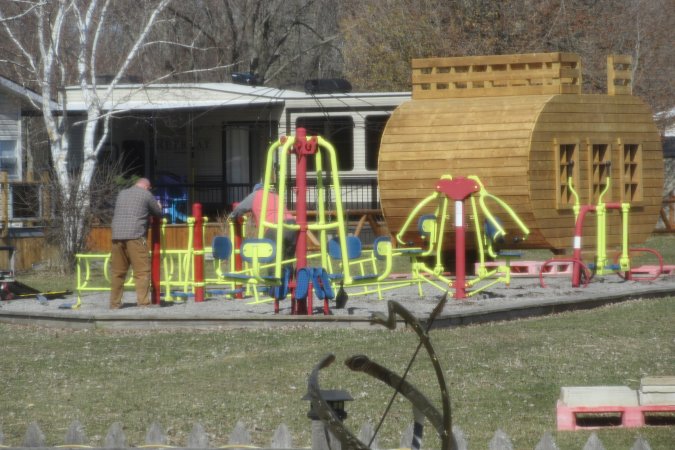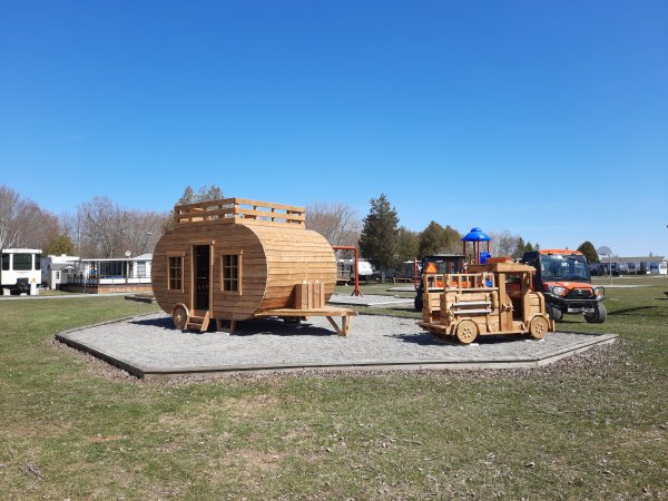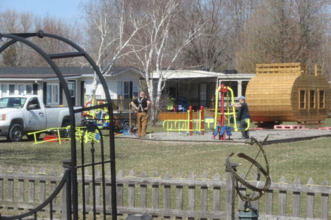 It is this morning that we finish the installation of the kid's trailer and the fire truck.