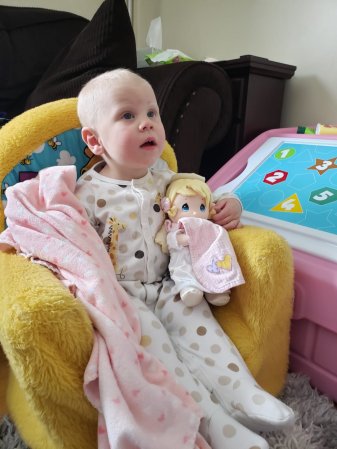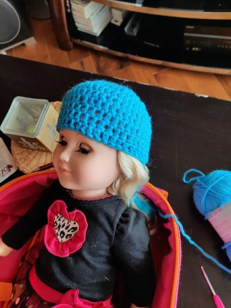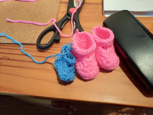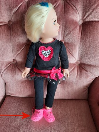 Michele keeps working with the crochet and getting better. She finished some slippers for the doll.