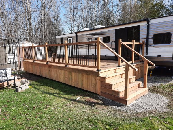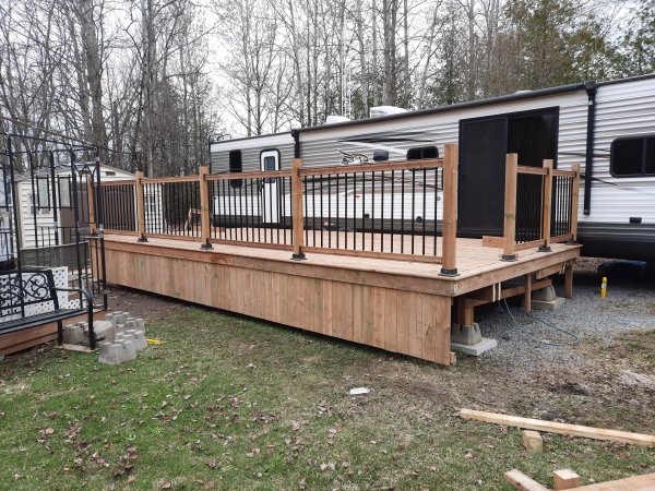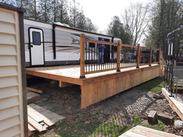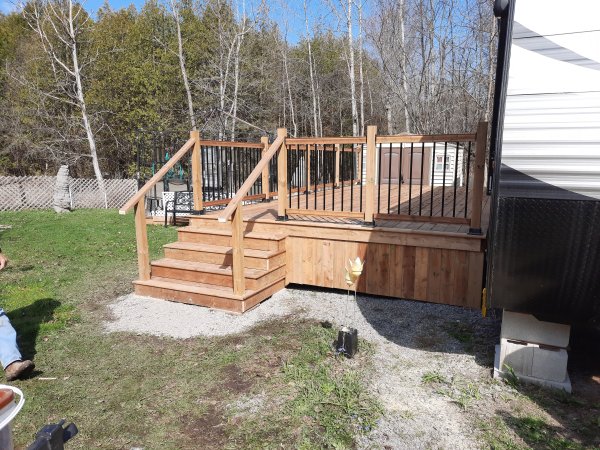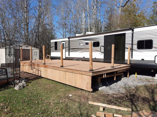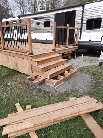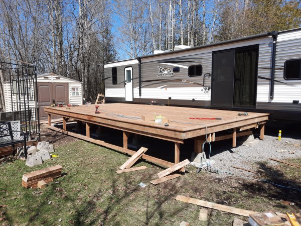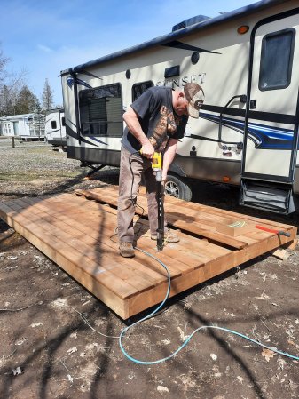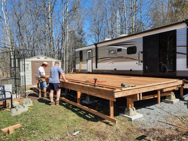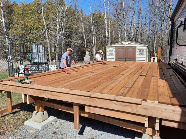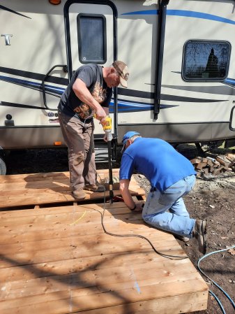 In the afternoon, I help Jan build a deck. It is 8X18 feet.