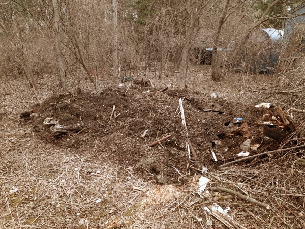 This is the pile of garbage, pine needles and other junk we moved so far. It was much bigger at the end of the day.