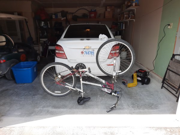 Next, roll the kid's trailer into place. We pulled the trailer with