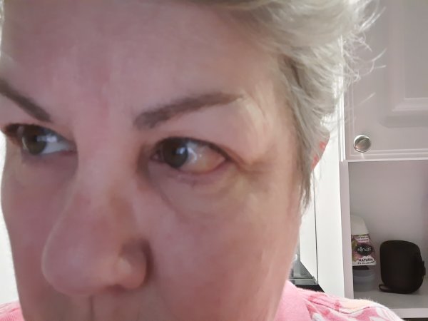 Late last evening, Michele had some kind of reaction to something. The white of her eyes swelled up.