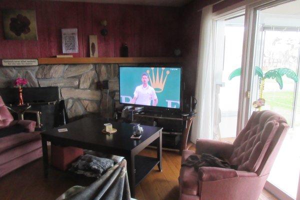 The outside weather does not bother Michele. She has tennis to watch on TV.