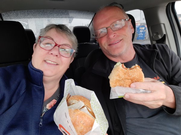 On our way back, we stopped at A&W for lunch. We had chicken burgers.