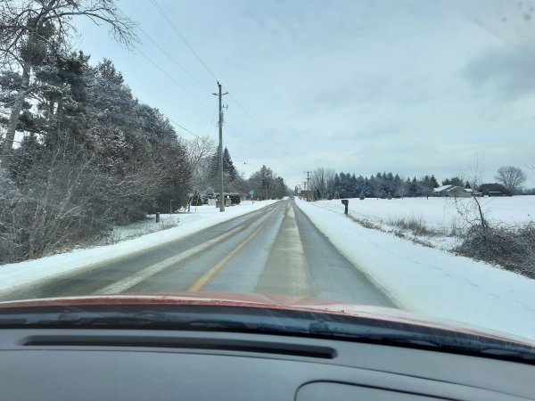 We had some snow overnight. Michele has her appointment at Helix in Belleville. She is getting new hearing aids.