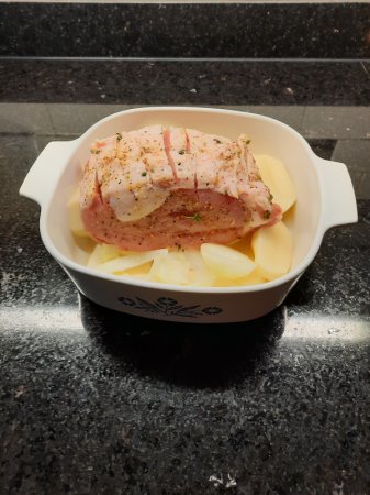 I prepared a pork roast and it was very good, but no photos of the finished product!