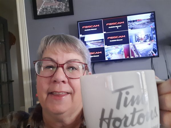 This is Michele when she was looking at us moving the BBQ Shack from our home on the security cameras.