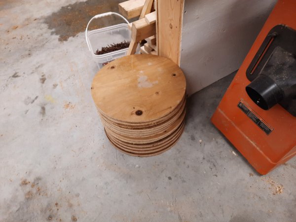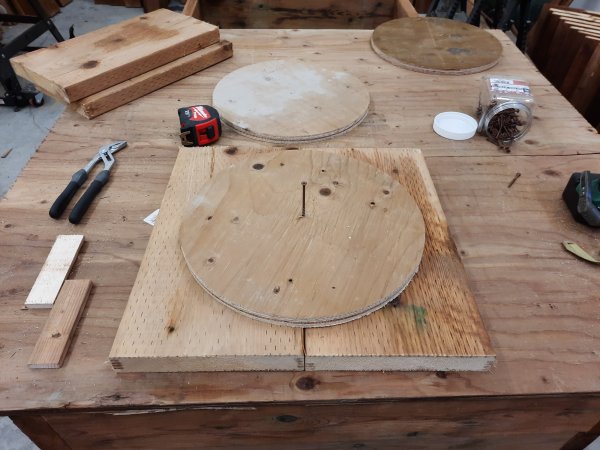 With the help of a "jig", I cut the plywood in the form of a wheel.