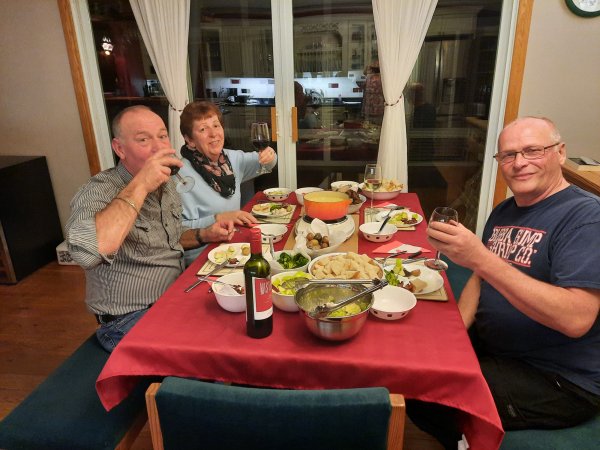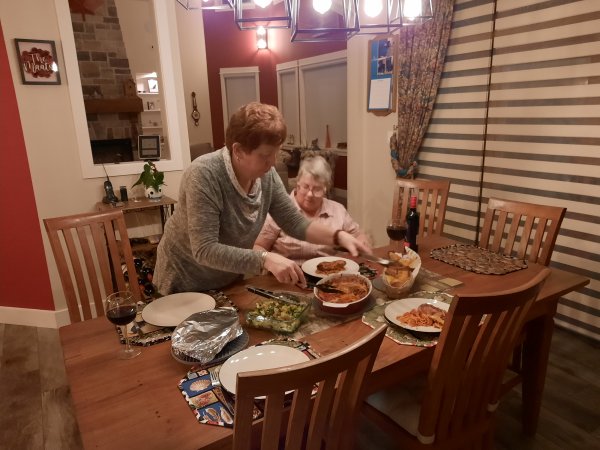 We had chicken Parmesan. It was good. After the meal, we played the game of Sjoelbak. It was one of my best nights playing the game. We are very lucky to have them in our "bubble" during the COVID.