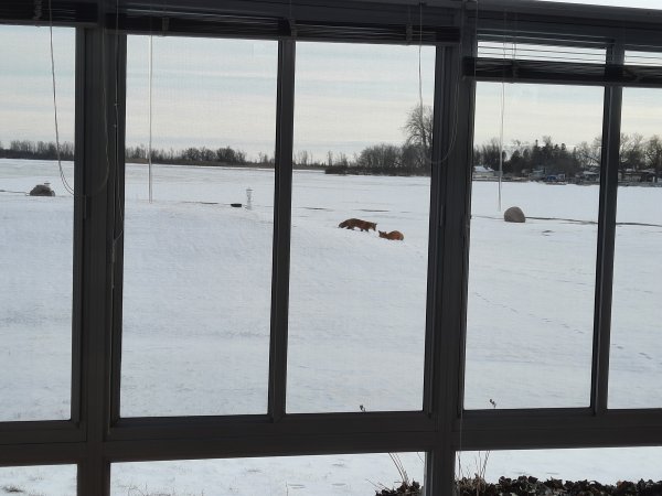 We had quite a show this afternoon. Two foxes came and played in the front yard for half an hour. What show!