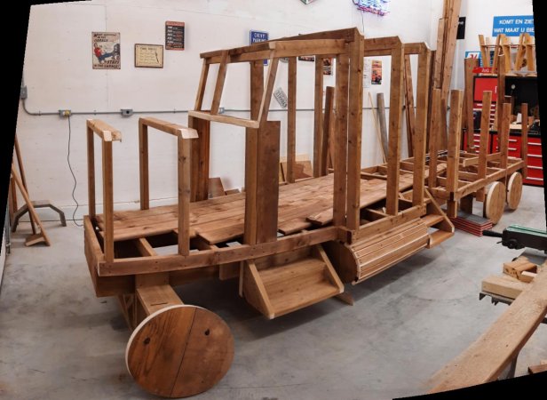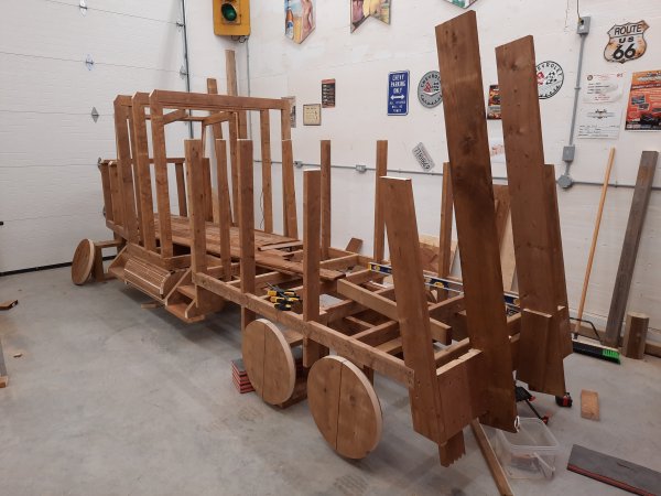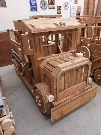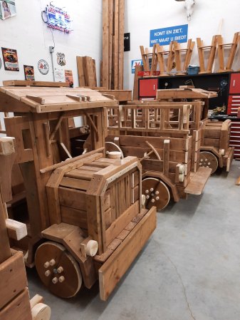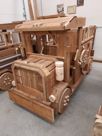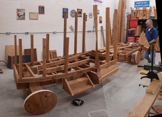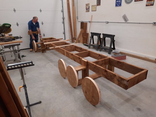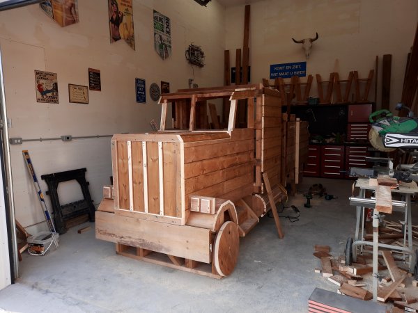The wrecker is going to be big, 18 feet long. Jan is very good. He uses only a photo as a plan.