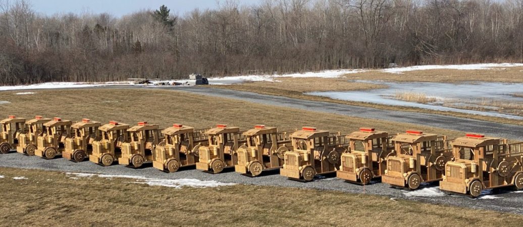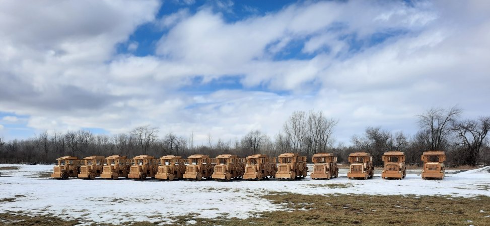 Here are the thirteen fire trucks I helped building. Fourteen trucks