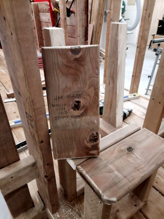Our names and date, plus COVID-19 is written on a board going to the wrecker.