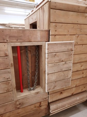 We have to move/roll the cooking shack from its position to the patio. We are 4 people, Jan, Jannie, Patricia and me.