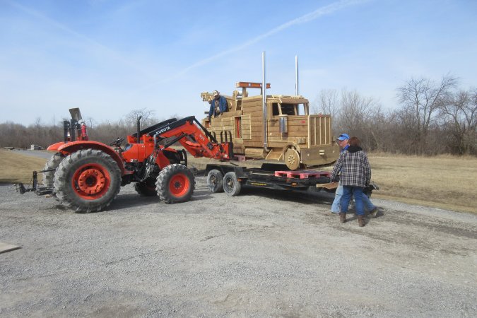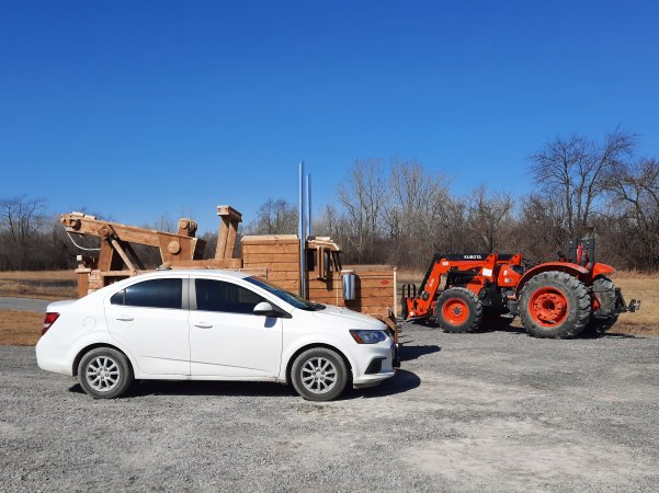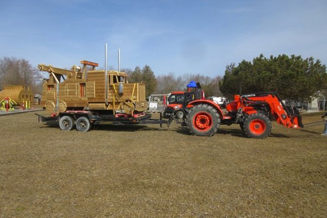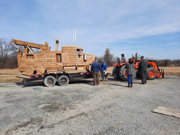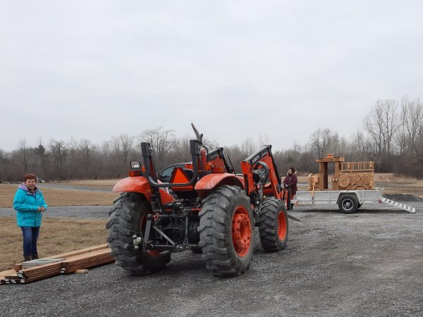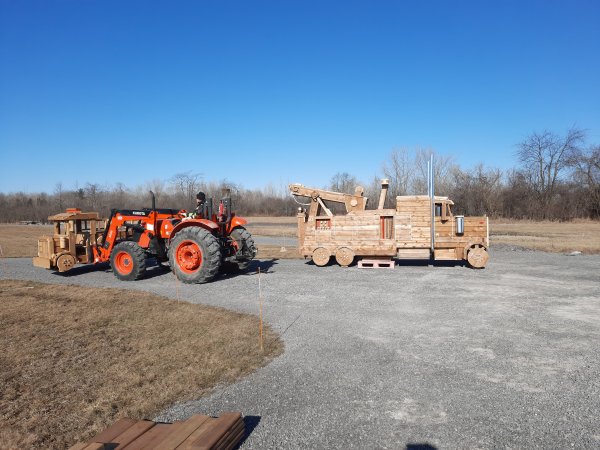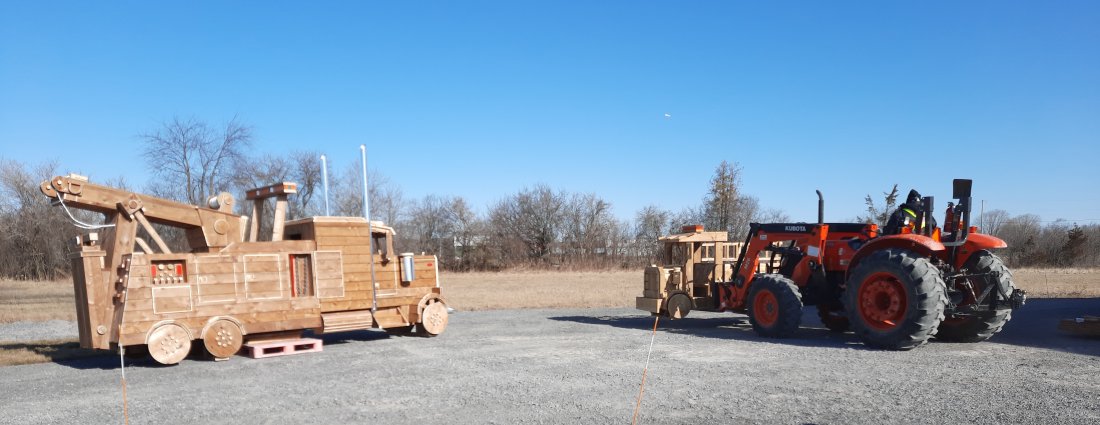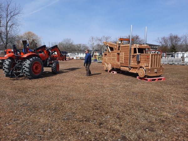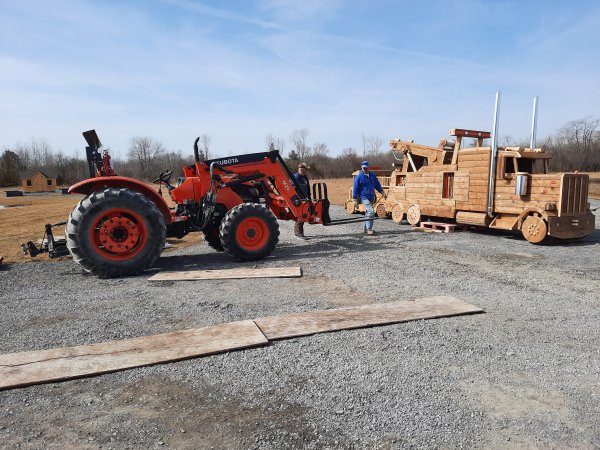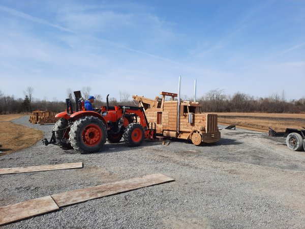 Once the tow truck is out of the shop, it can be lifted with the tractor.