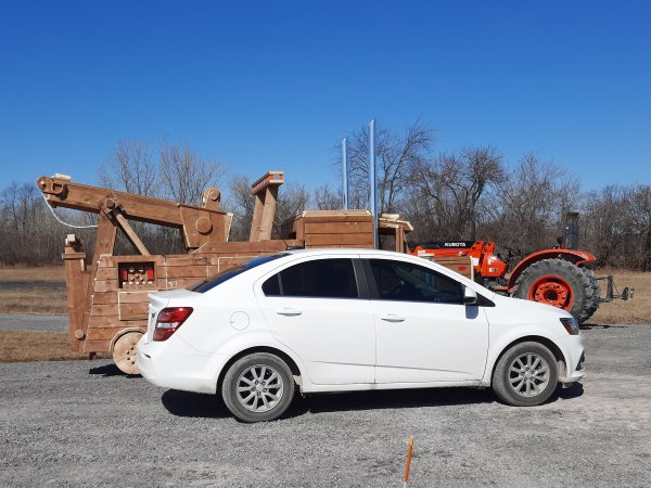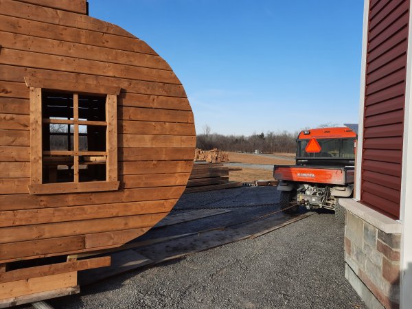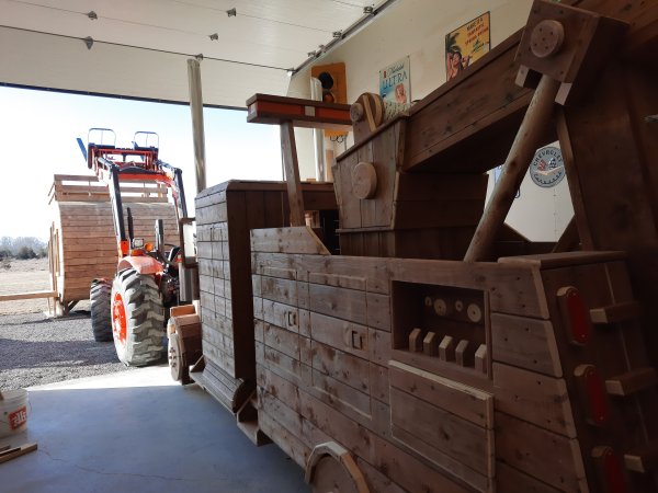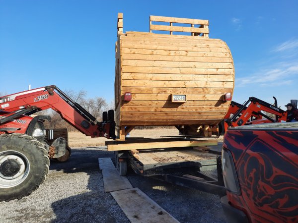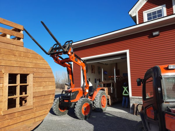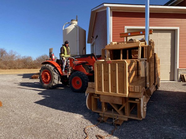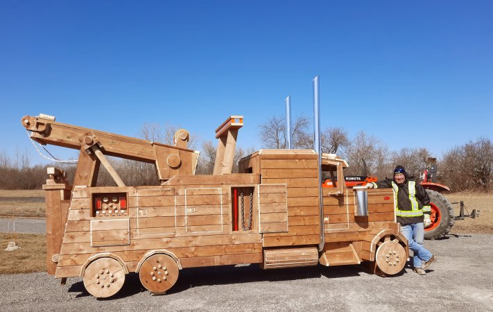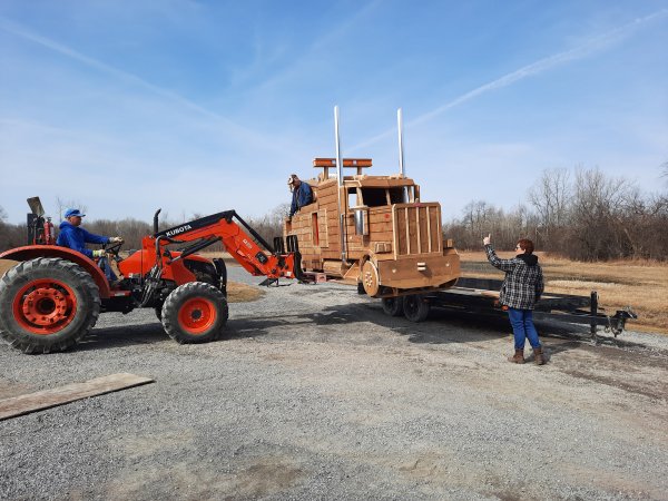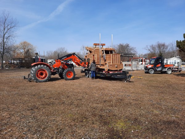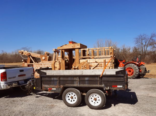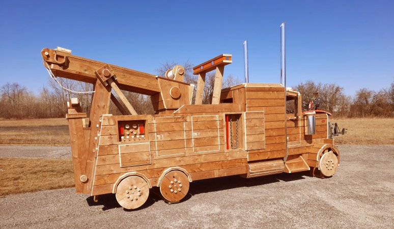 Once the tow truck is out of the shop, it can be lifted with the tractor.