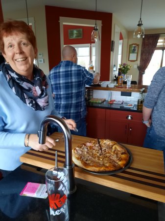 Home-made pizza cooked in a real pizza oven. Jan is the cook.