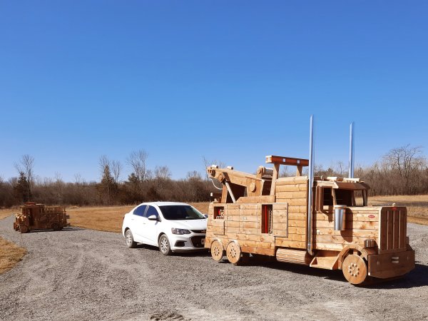 With the fire truck gone, I placed our car near the tow truck for fun.