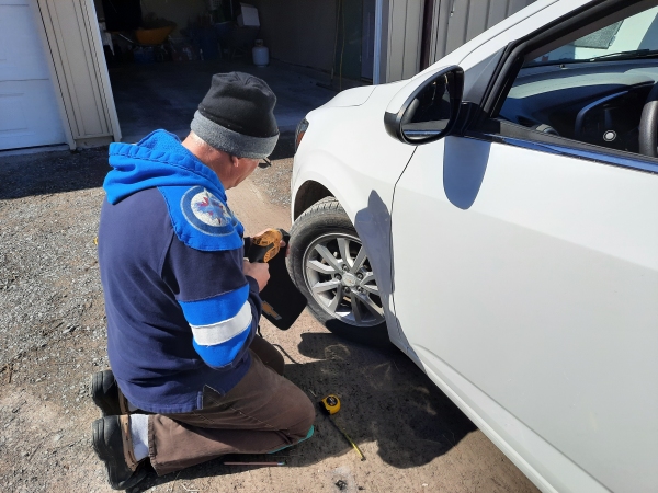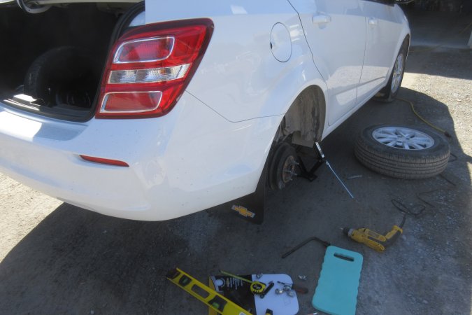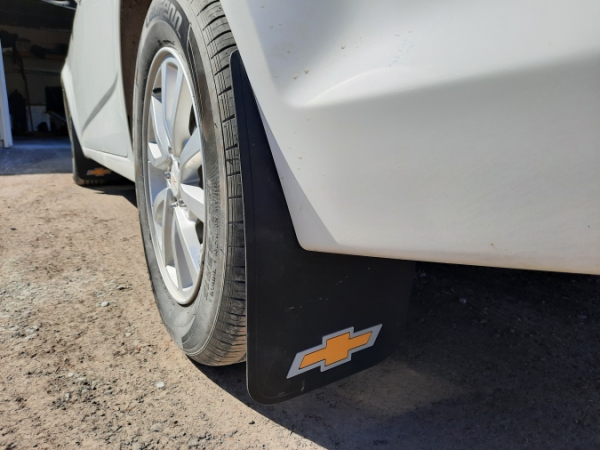 The sun is out. It is +10° C. It is time to install the mud flaps on the Sonic.