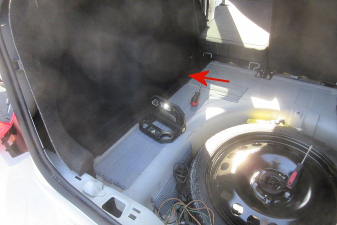 The wires are placed under the existing plastic moulding/fairing. They come out in the trunk.
