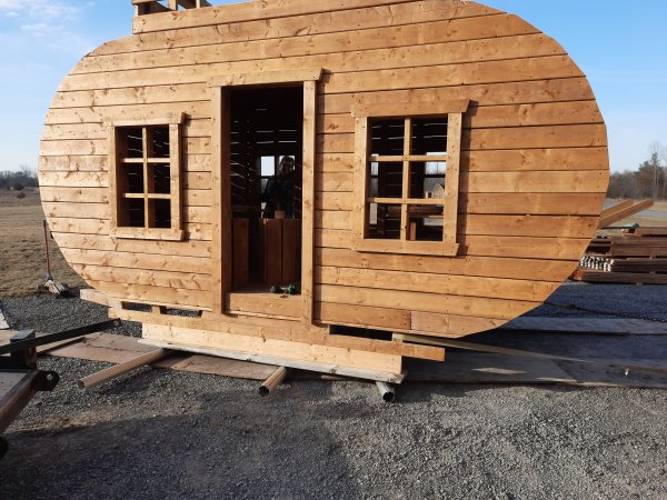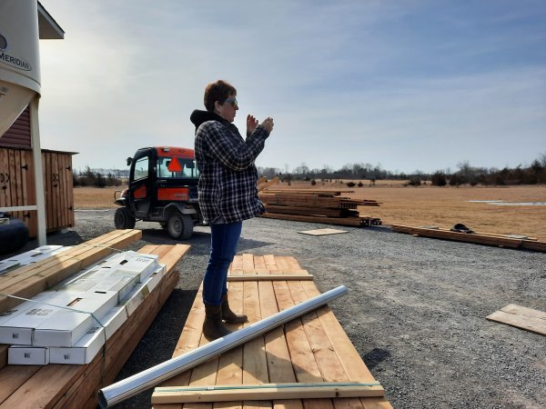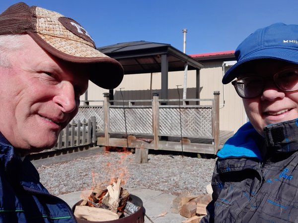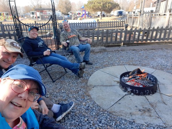 Patricia had to give a tour of a trailer for sale in the park. After the visit, beer and Andrew stopped by for a beer.