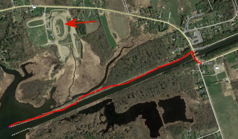 I walked a big 3,5 km. The arrow points to the Brighton Speedway.