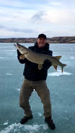 Jeremy went ice fishing today (Saskatchewan) with his friends. They caught 5 pikes, two of them were over 14 pounds.