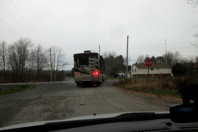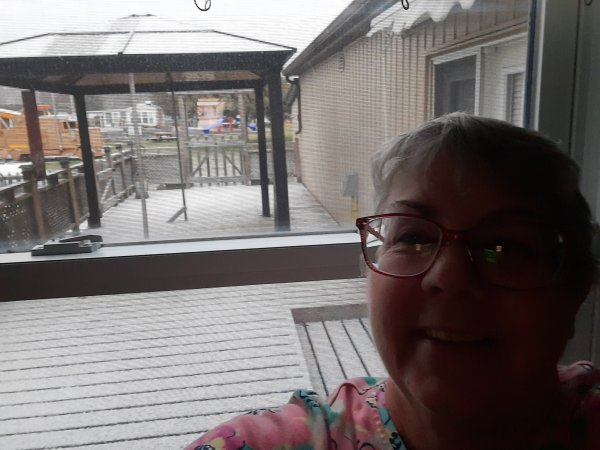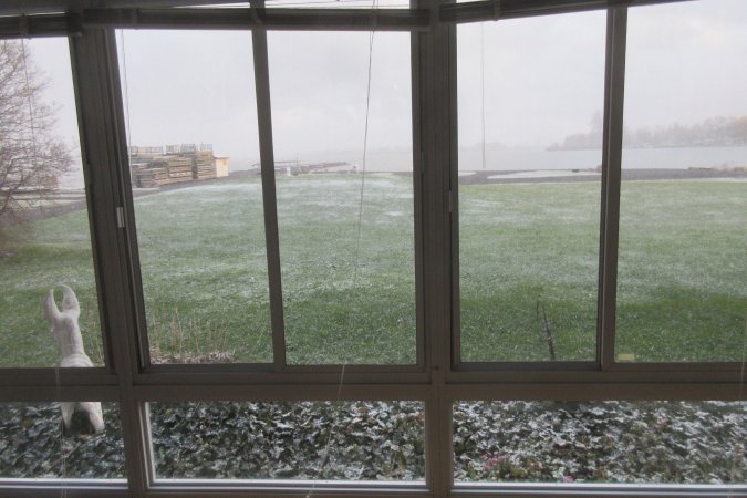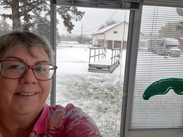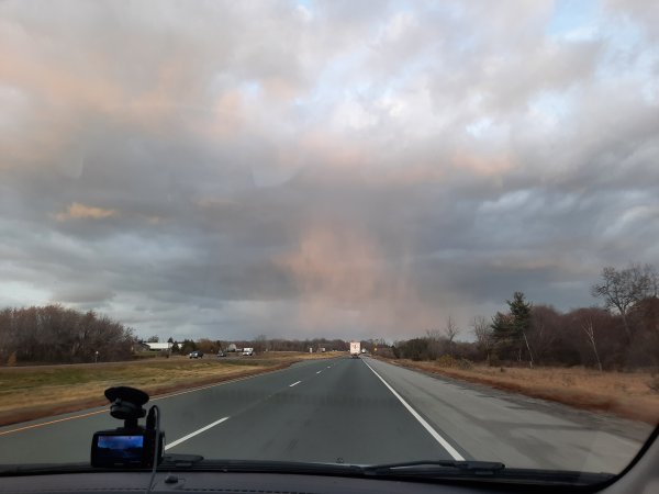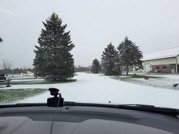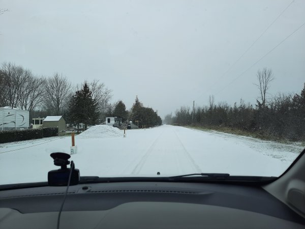 On our way back home, we took highway 401 and saw this white cloud in front of us. It is snow coming down.