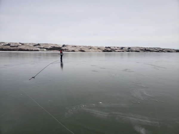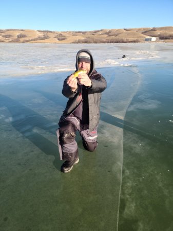 It has been cold in Moose Jaw in the past few weeks. Buffalo Pound Lake now has three to four inches of ice.