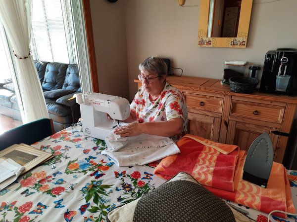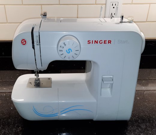 Michele found a small sewing machine in Market Place. We got it for $25. It works very well.