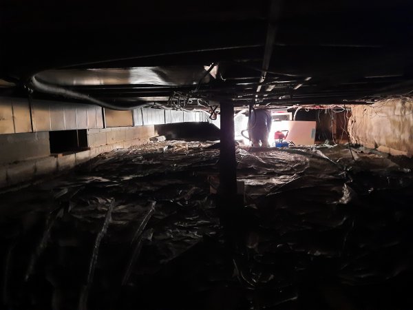 This is Jan in the basement of our house. He is changing a condenser on the furnace. The furnace is working like new now.