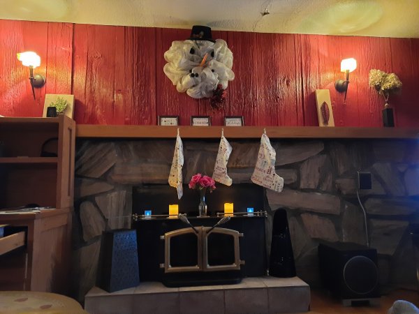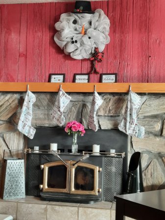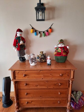 Some of our Christmas decorations. Michelle found the snowman face on Market Place for free.