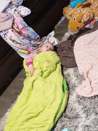 Natasha is still not feeling well. That does not stop her from going outside with mom and dad.