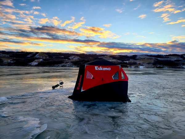 Jeremy bought this fishing tent last winter. This is Buffalo Pound Lake.