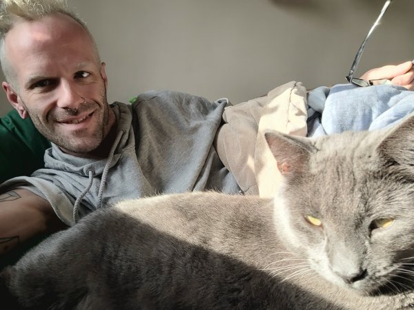 Benoit sent these photos back. He is babysitting a friend's cat (Remi).