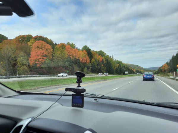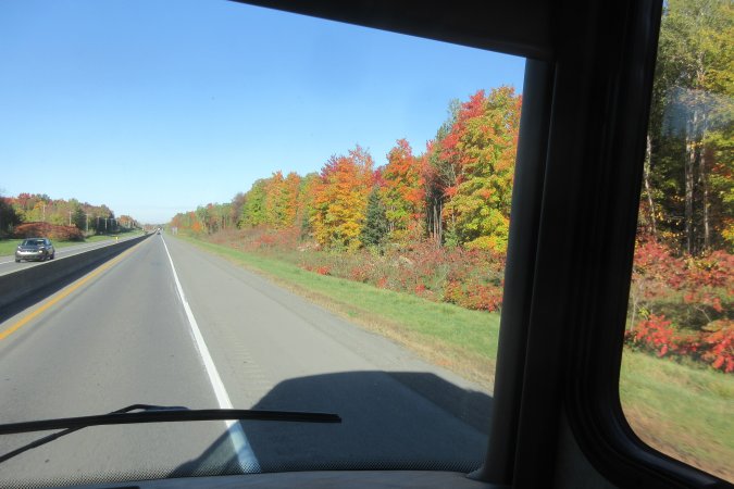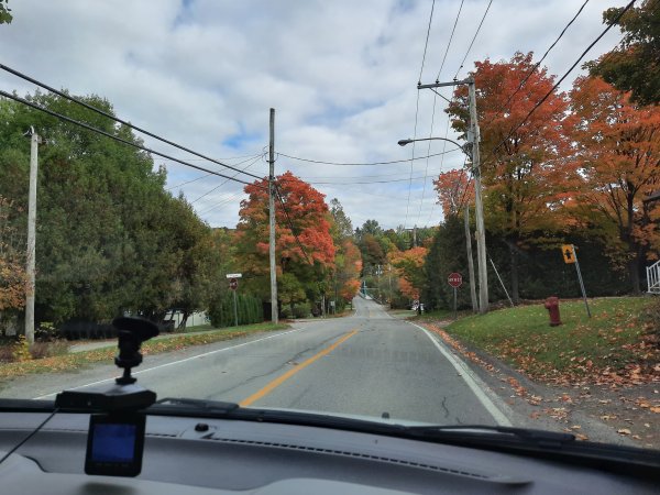 We are on our way to Rolland and Suzie's place. Fall has arrived, the leaves are changing.