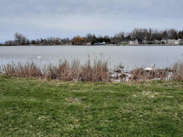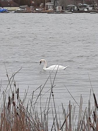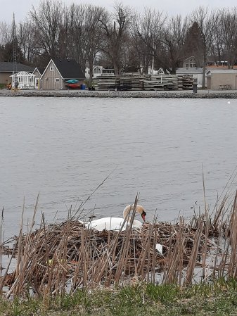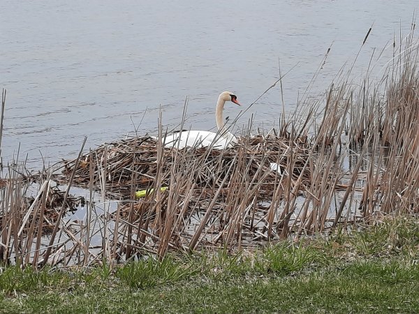 I noticed the swans made a nest nearby. The dad is on the water eating while the mom looks after the eggs.