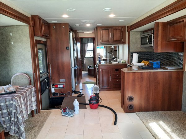 Michele does a clean-up inside. It is mostly dusty from 6 months in storage.