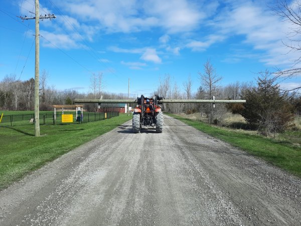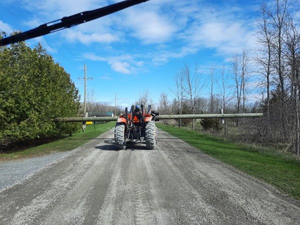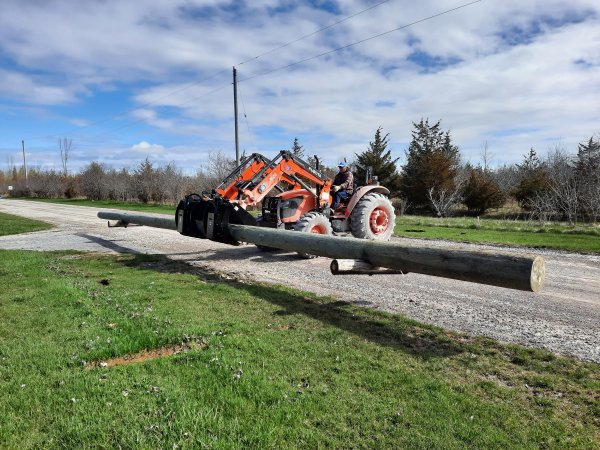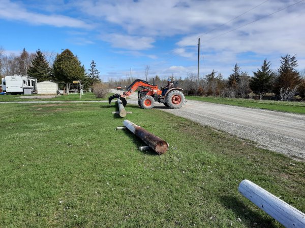 Jan is using his new grapple to move the poles blocking some areas of the Park.