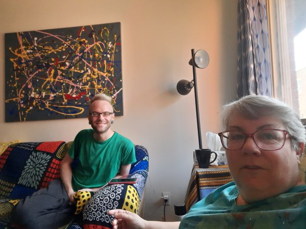 We are invited to Jannie and Jan's place for supper. Patricia and Andrew are with them. A good meal with good people.