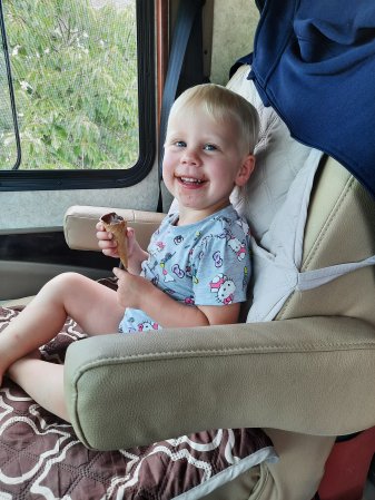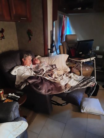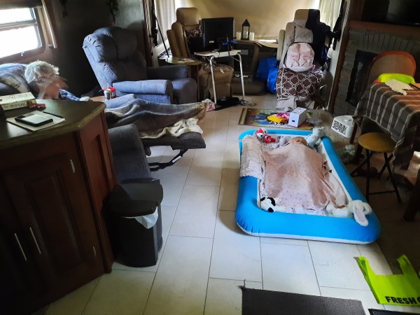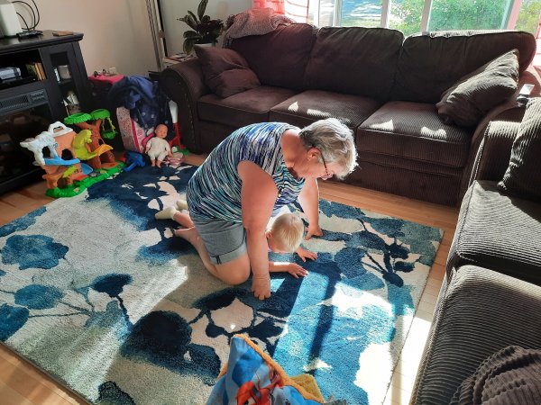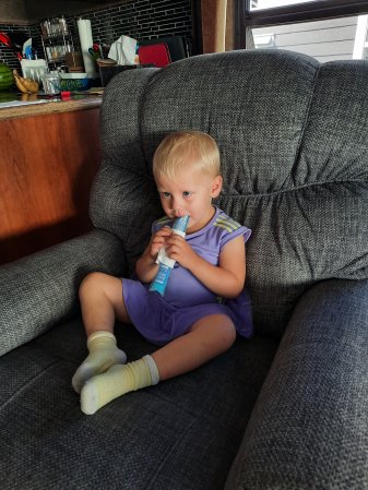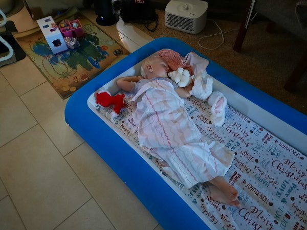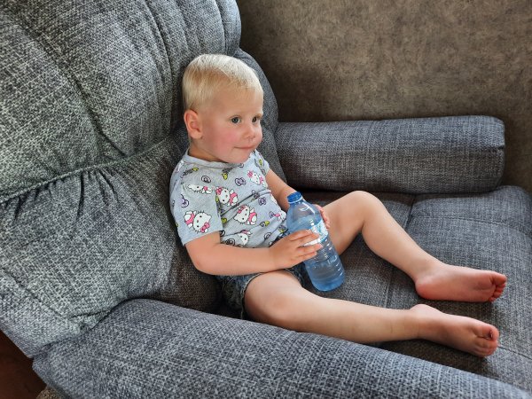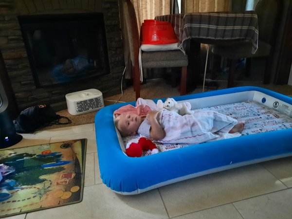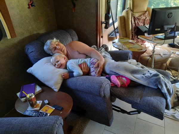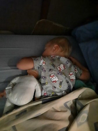Natasha woke up at 6 am. Grand-maman takes her in the reclining chair. She sleeps until 7:45 am.