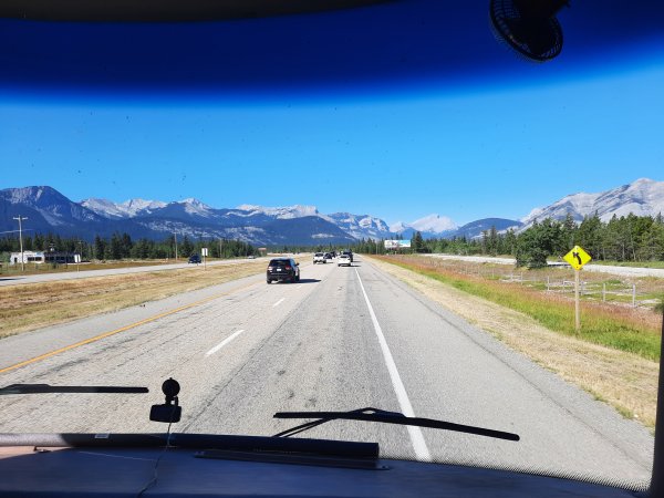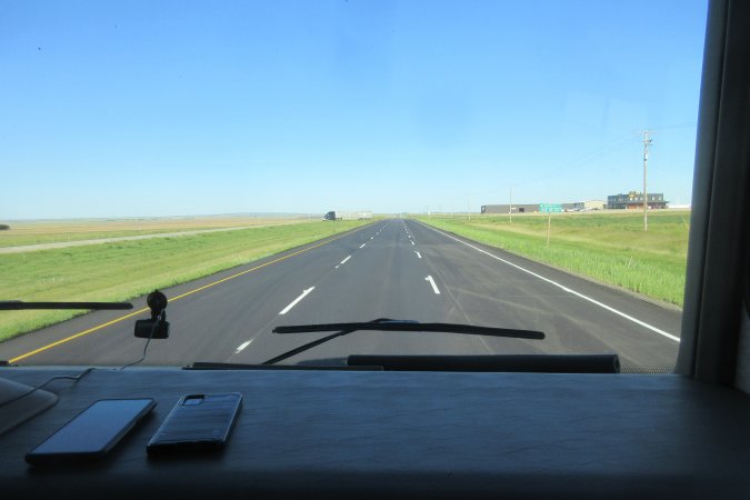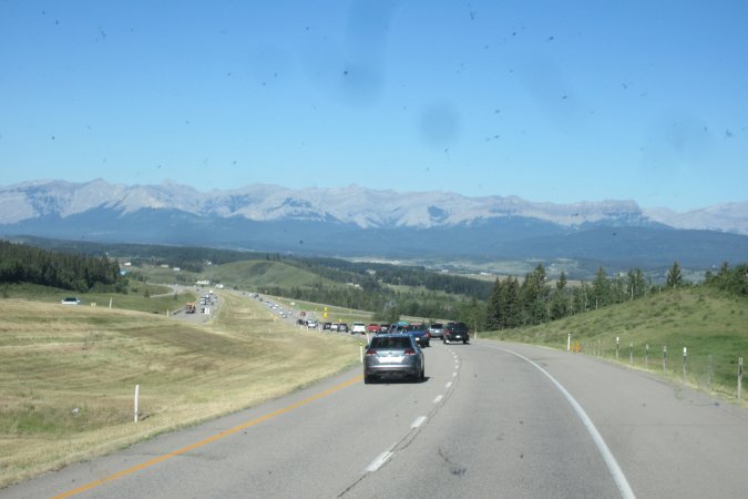 We are back on the road by 7:15 am. Direction Calgary and the Rockies. It is not as hot today. The wind has died down too.