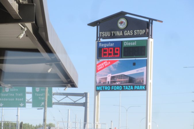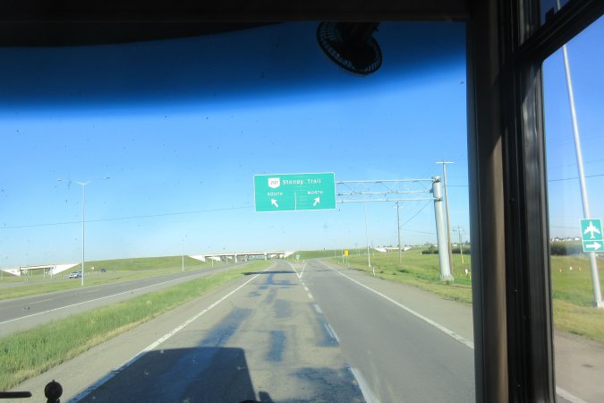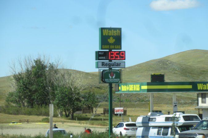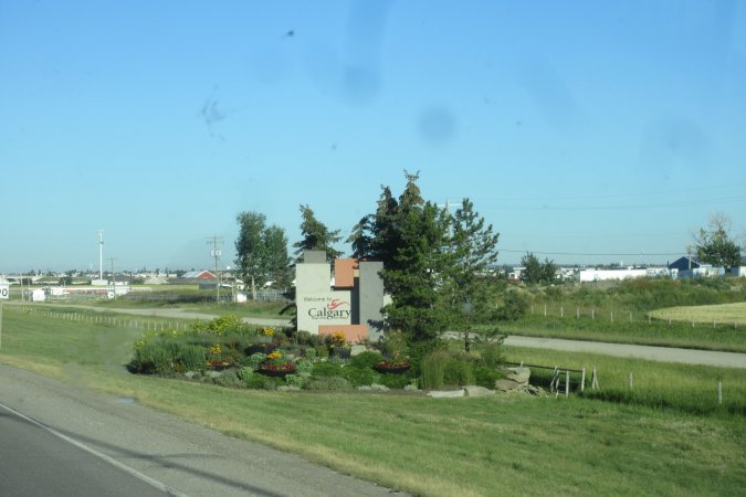 We are going around Calgary by the south. This way, we will stop at the Indian Reserve for cheap gas.