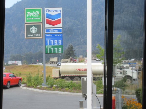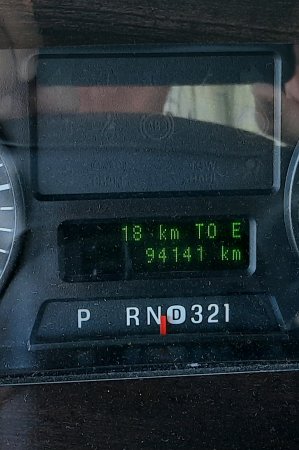 By the time we arrived at the gas pump, we had only 18 km of gas to go in the MH.