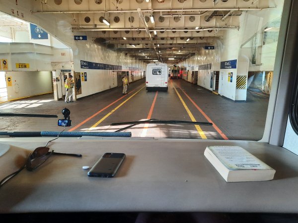 The attendant told us we may make it on the next ferry (3 o'clock). We will see.