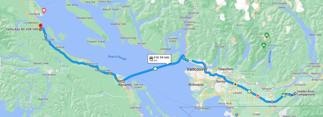 One hour and forty-five minutes later, we leave the ferry in Nanaimo.