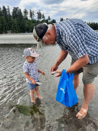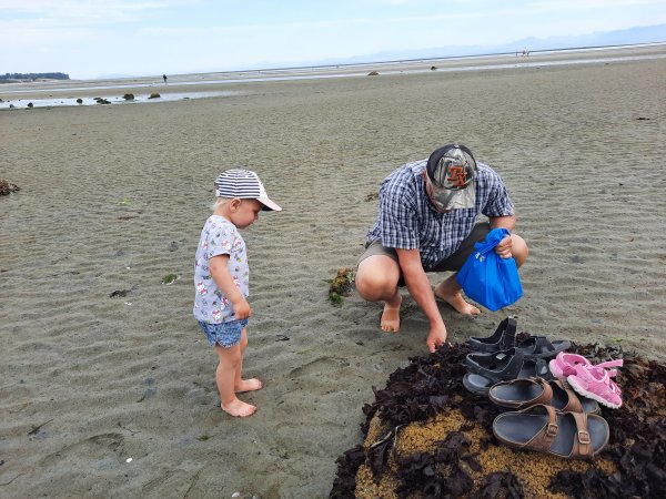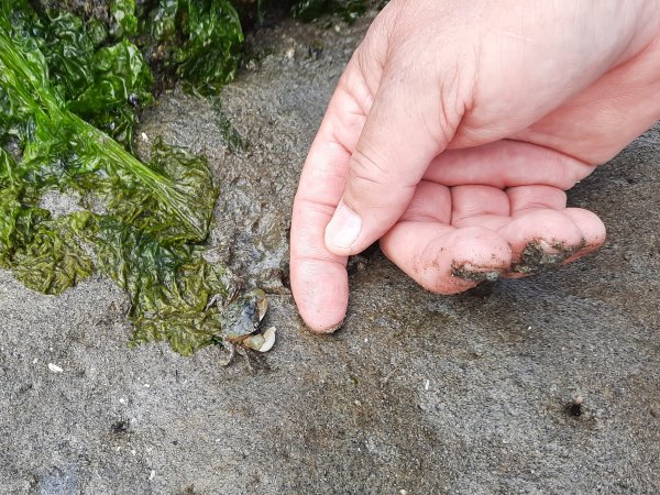I lifted some seaweed to show Natasha some baby crabs. She is not sure about that.