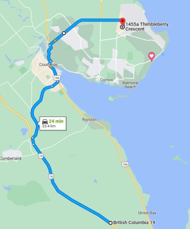 We have to drive through Courtenay first to get to Comox. Actually, where the military housing is called Lazo.
