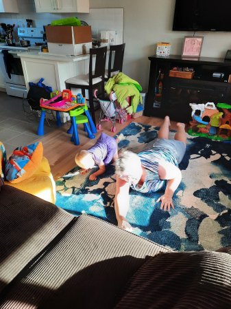 We are looking after Natasha again today. Jeremy and Kristin are unpacking the boxes and getting the house in order.